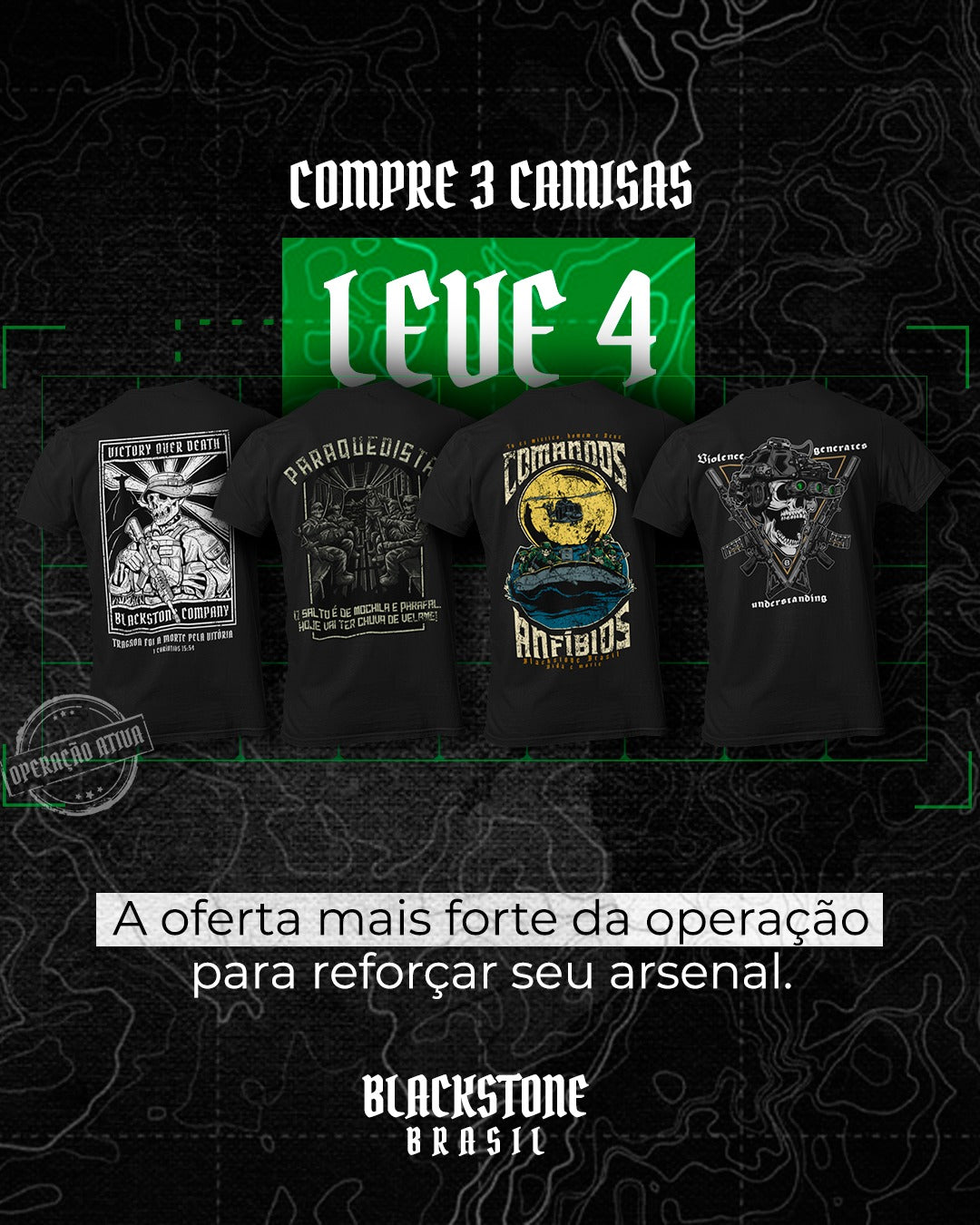 Excelente, BLACKSTONE é sem dúvida nenhuma a marca de camisas que consegue expressar em suas estampas o verdadeiro life style do Guerreiro, do homem verdadeiramente arrojado e defensor dos valores DEUS, PÁTRIA, FAMÍLIA E LIBERDADE.